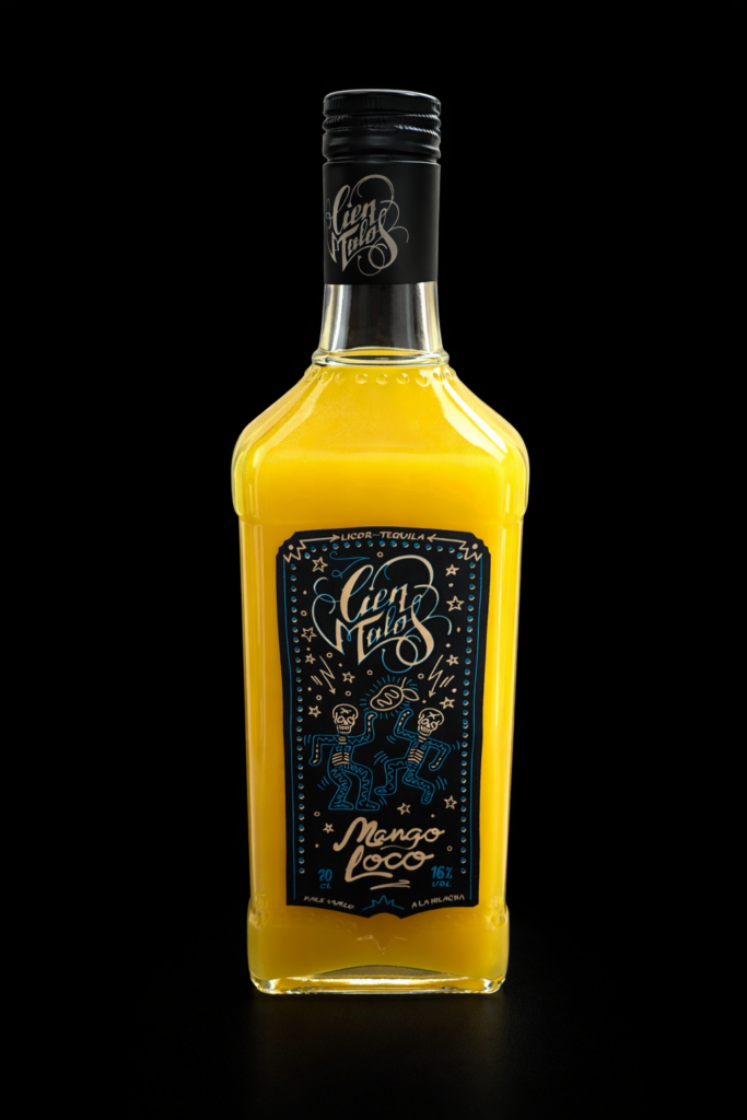 Cien Malos presenta una amplia gama de licores frutales a base de tequila, elaborados con alcohol de origen agrícola y una mezcla cremosa de soja y coco que aporta una textura suave y sedosa.
